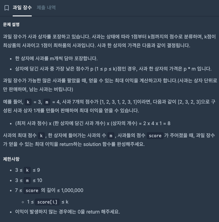 1. 한 박스의 과일들 중 낮은 점수로 계산하기 때문에, 같은 점수의 과일들이 있으면 최대한 모아야 한다.