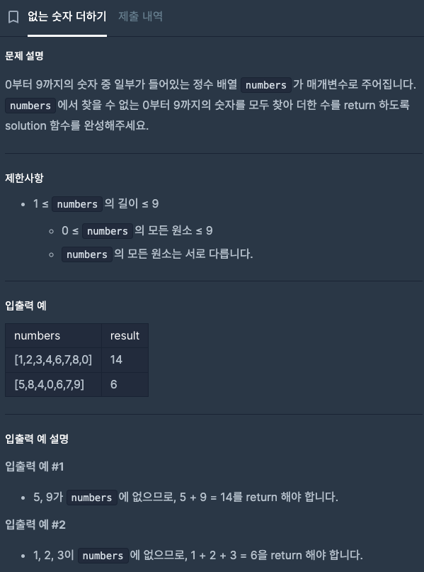 1. numbers에서 filter를 통해 0 ~ 9중 없는 숫자만 contains로 골라낸다.