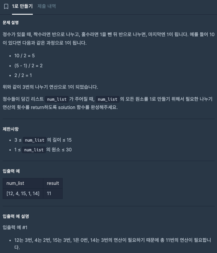 1. 배열의 값들마다 특별한 연산을 반복하여 1을 만드는데