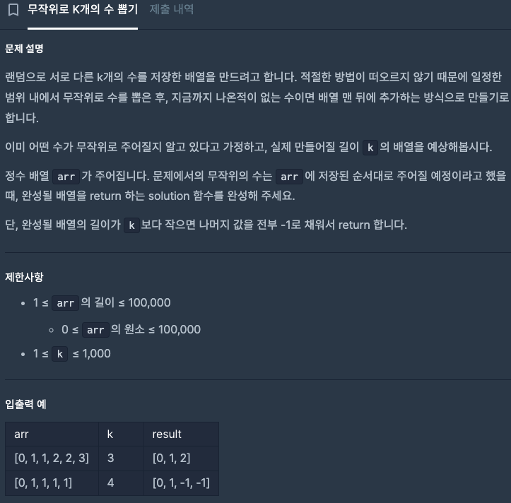 3. 새로운 배열의 count가 k보다 작으면 남은 공간을 -1로 채워준다.