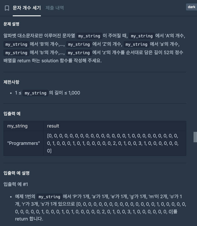 2. 순환하며 존재하는 알파벳의 index에 1을 더해주었다.