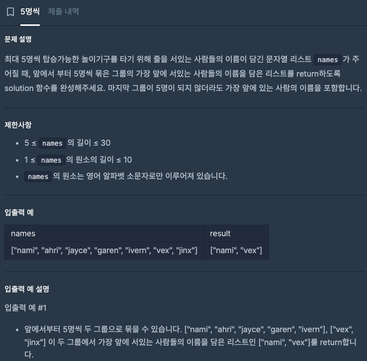 return names.enumerated().filter { $0.offset.isMultiple(of: 5) }.map { String($0.element) }