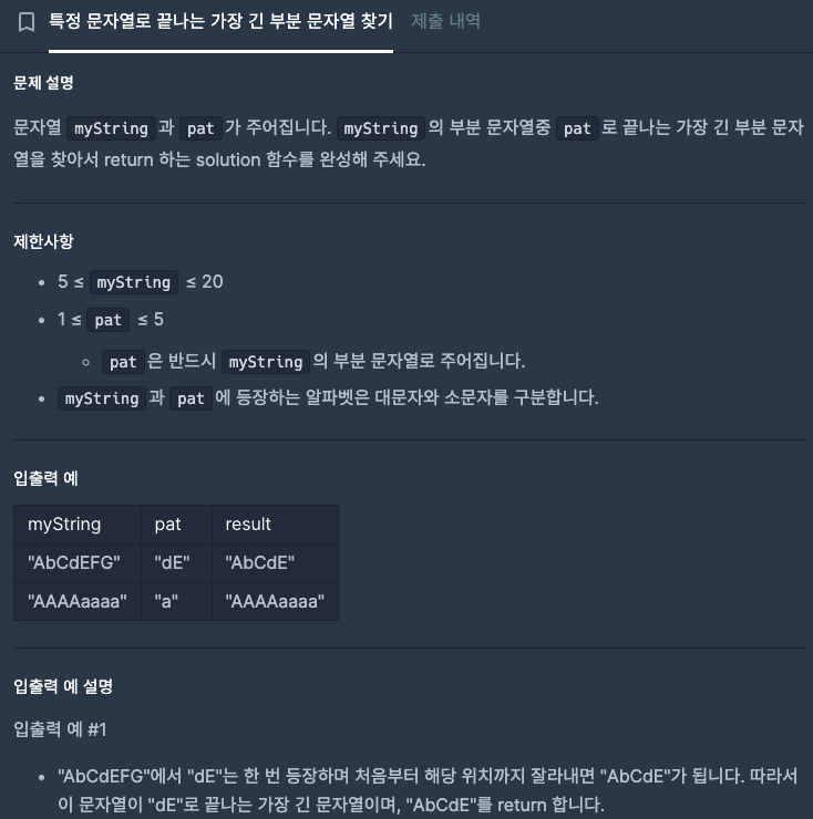 [Day17-1] 특정 문자열로 끝나는 가장 긴 부분 문자열 찾기