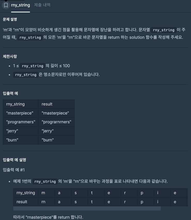 1. rny_string에서 "m"을 "rn"으로 바꿔주면 되는 문제이다.